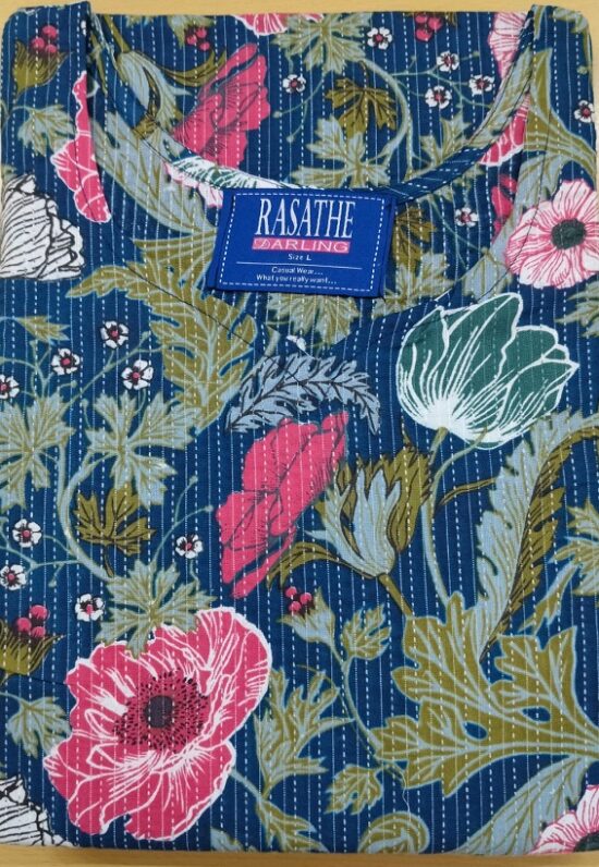 THE FABRIC IS SUPER COMFORTABLE WITH KHATA THREAD WORK ALL OVER THE FABRIC.