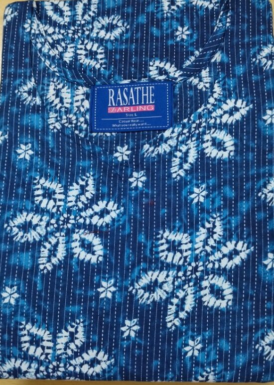 THE FABRIC IS SUPER COMFORTABLE WITH KHATA THREAD WORK ALL OVER THE FABRIC.