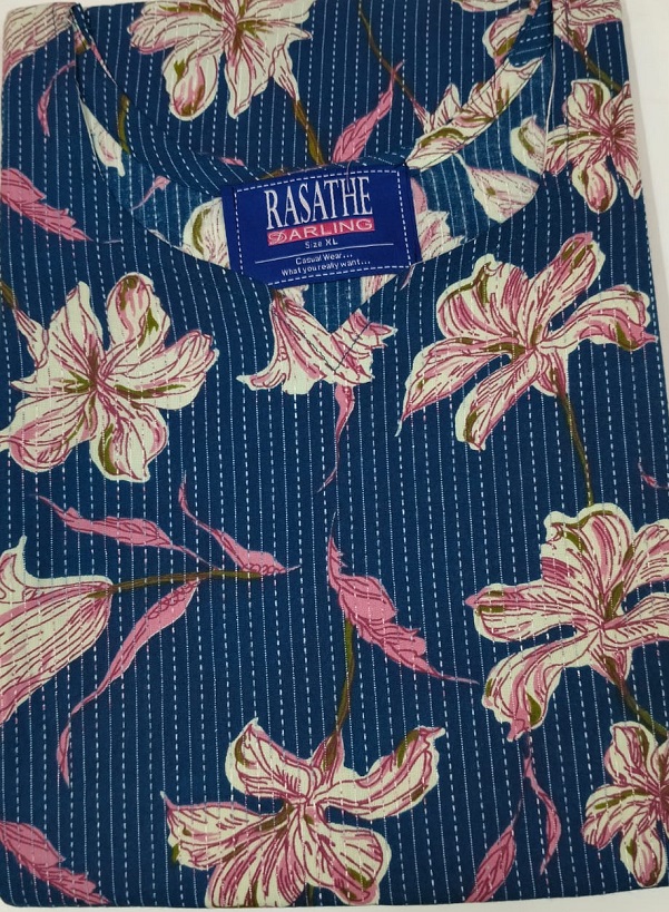 THE FABRIC IS SUPER COMFORTABLE WITH KHATA THREAD WORK ALL OVER THE FABRIC.