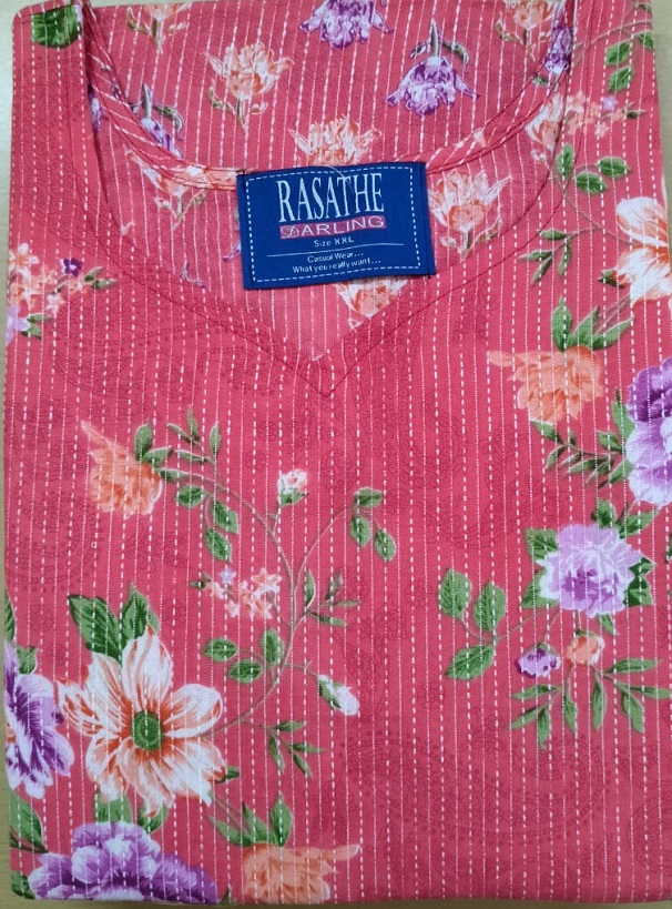 This Model Is A Maxi Gown Nighty with height of 47 inches, it is made of soft Khata fabric. super comfortable fall.