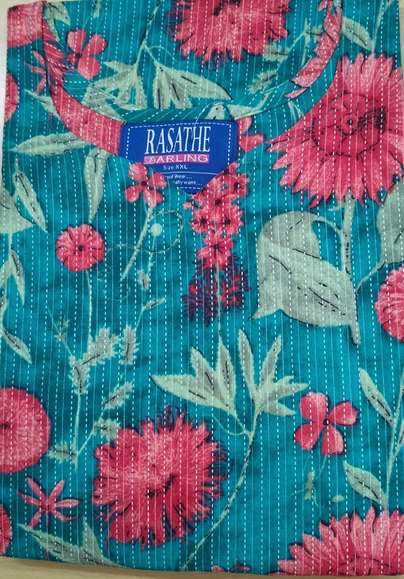 This Model Is A Maxi Gown Nighty with height of 47 inches, it is made of soft Khata fabric. super comfortable fall.