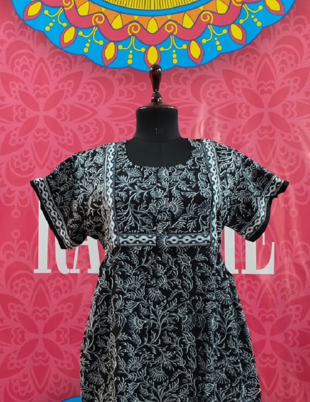 This Model Is A Maxi Gown Nighty, It has Bordered Yoke For style, Has Long zip and can be used for Feeding also.