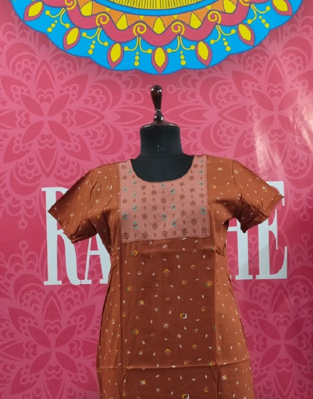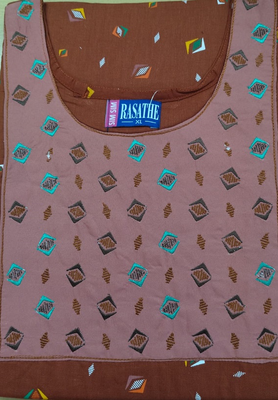 Cotton fabric nighty with very attractive Embroidery work in the front yoke area.